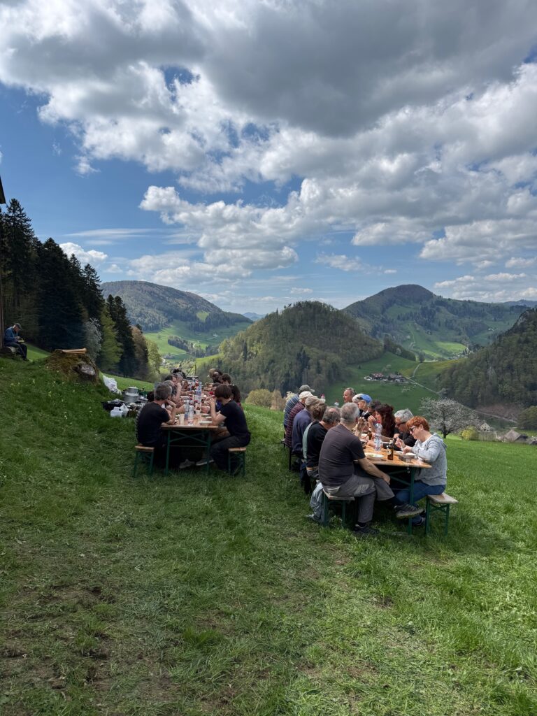 Dank der grossen Einsatzbereitschaft und der zahlreichen helfenden Hände konnte die Arbeit zügig und effizient erledigt werden. Zwischendurch blieb Zeit für eine gemeinsame Kaffeepause, und das Mittagessen mit frisch zubereiteter Holzfeuerpasta bot Gelegenheit zum Austausch und zur Stärkung.